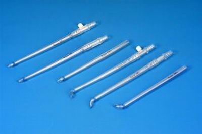 Injected Tip, Straight or Curved tip, available with connector acceptance, vented connector or non-vented connector. A fixed ring with tip and depth line permits precise position of cannula.
