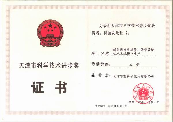 Home > 關于我們 > 天津市科學技術進步獎證書