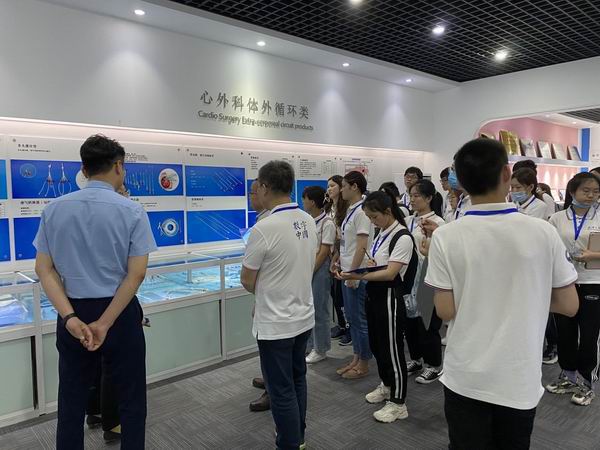 首先,我司人力資源部總監李惠和質量部總監孫莉帶領師生們參觀了公司展覽室并觀看紀錄片,回顧我司發展歷程,為師生們熱情講解了公司的企業沿革、研發產品,科研實力以及在醫用塑料方面的卓越成就。接著帶領師生們參觀了我司十萬級凈化生產車間,全自動化的注塑車間等。